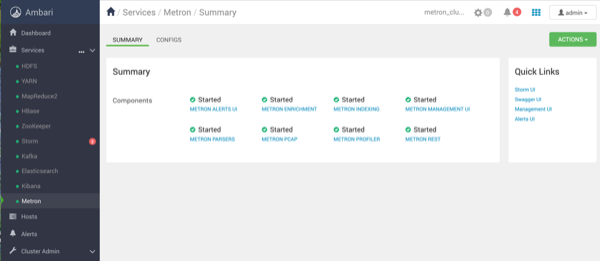 From Ambari, click Metron in the Services panel and make sure you've selected the