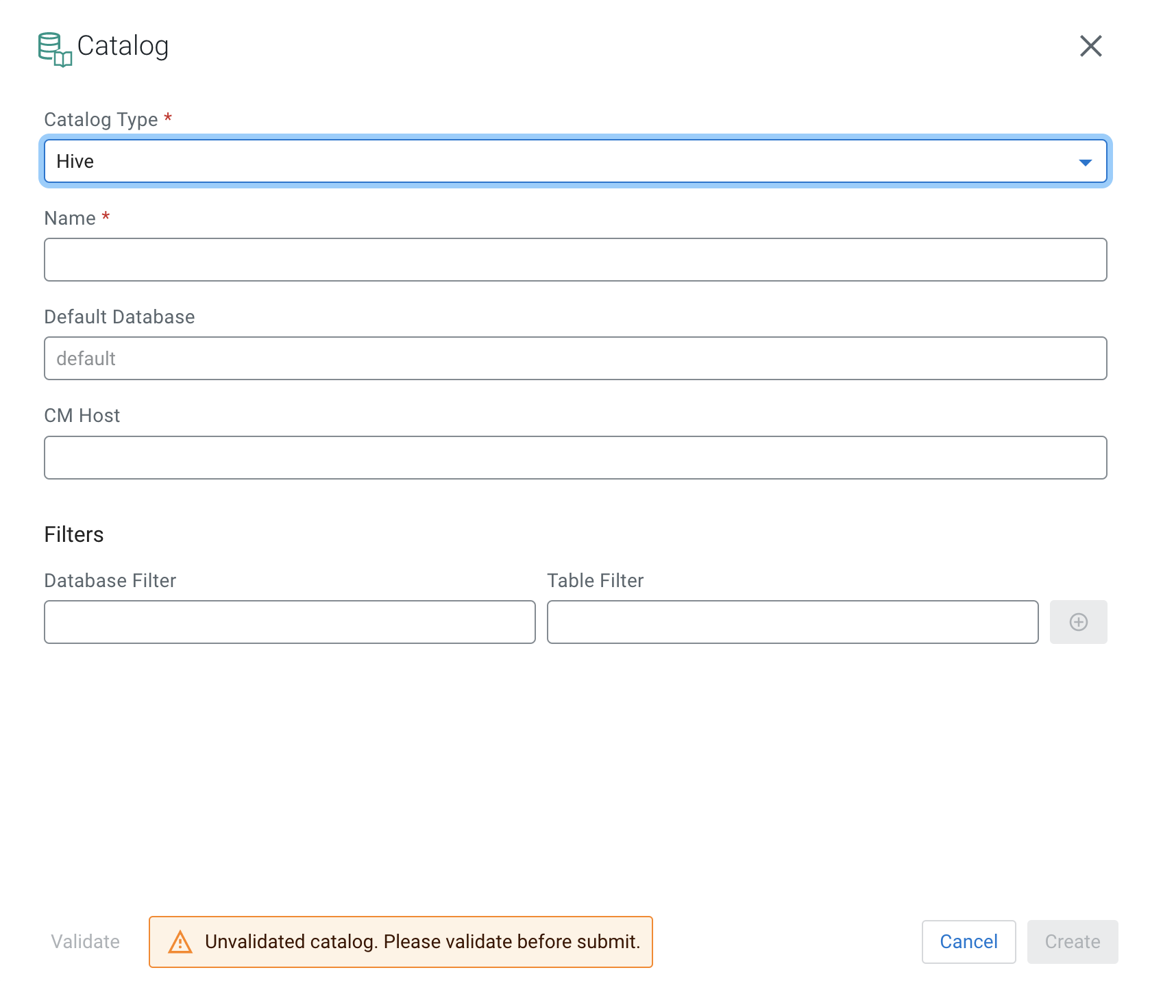 tables in Kudu and Hive are automatically imported to SSB.After registering a catalog, you can edit, duplicate and