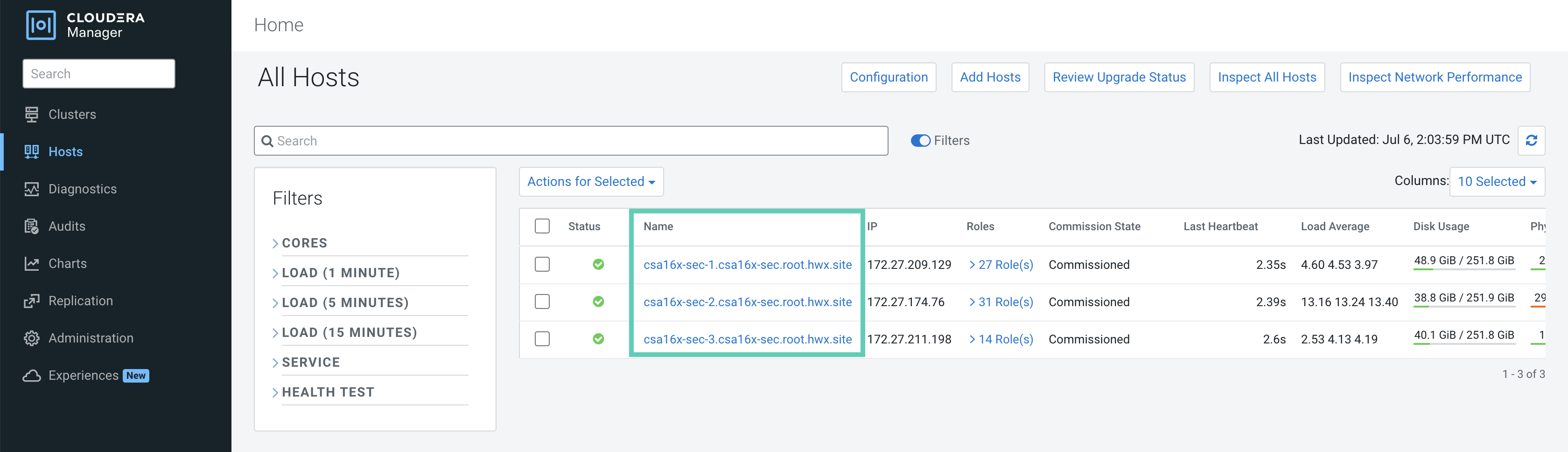 environment page, then access Hosts > All Hosts from the Cloudera Manager homepage: