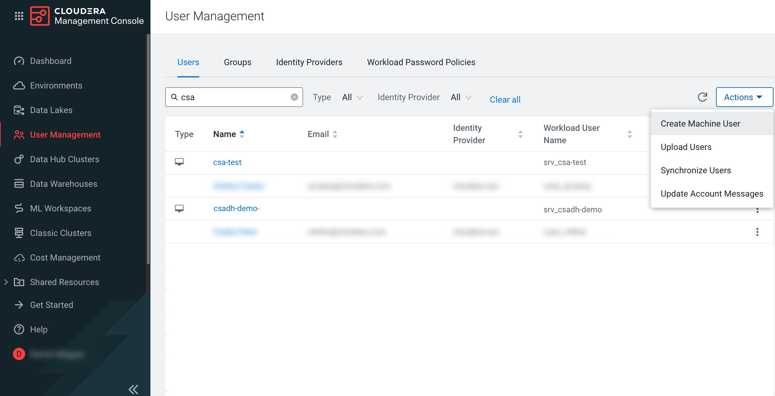 Navigate to Cloudera Management Console > Environments, and select the environment where you want to create a