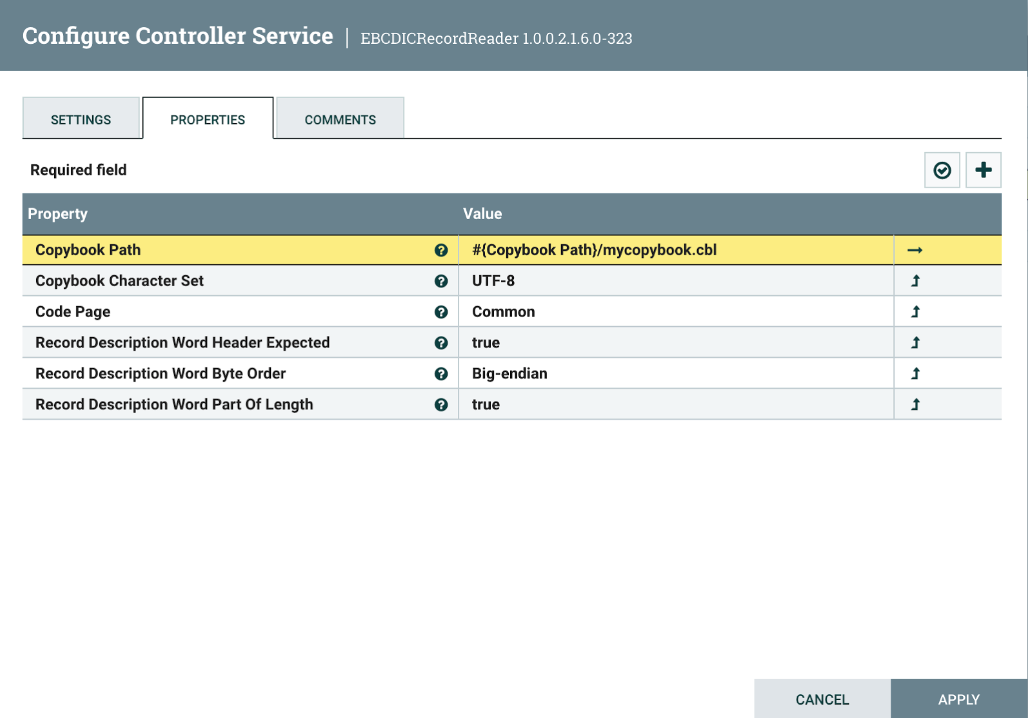 Controller services provide shared services to be used by the processors in your dataflow. Configure the EBCDICRecordReader before building the NiFi dataflow to ensure that it is available during processor configuration.