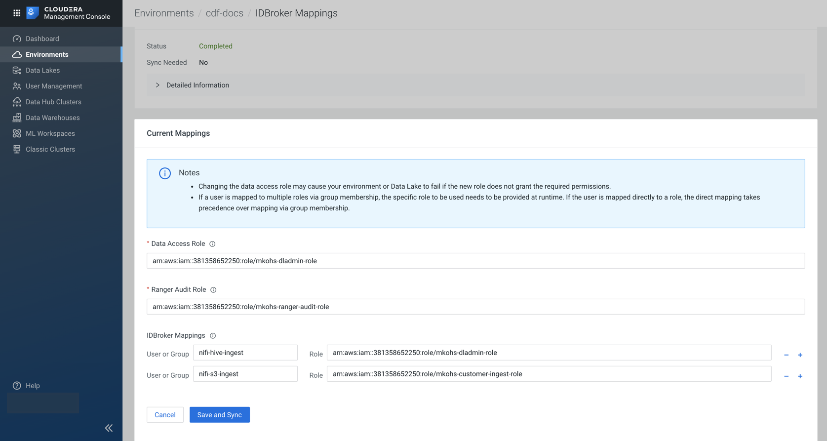 Access IDBroker mappings in Cloudera Management Console.