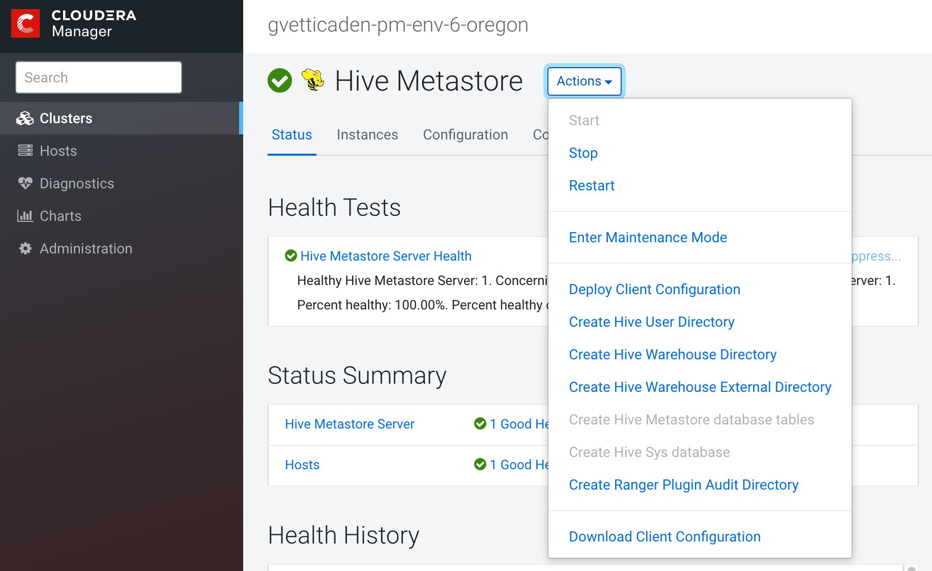 Click Hive Metastore, located on the Cloudera Manager