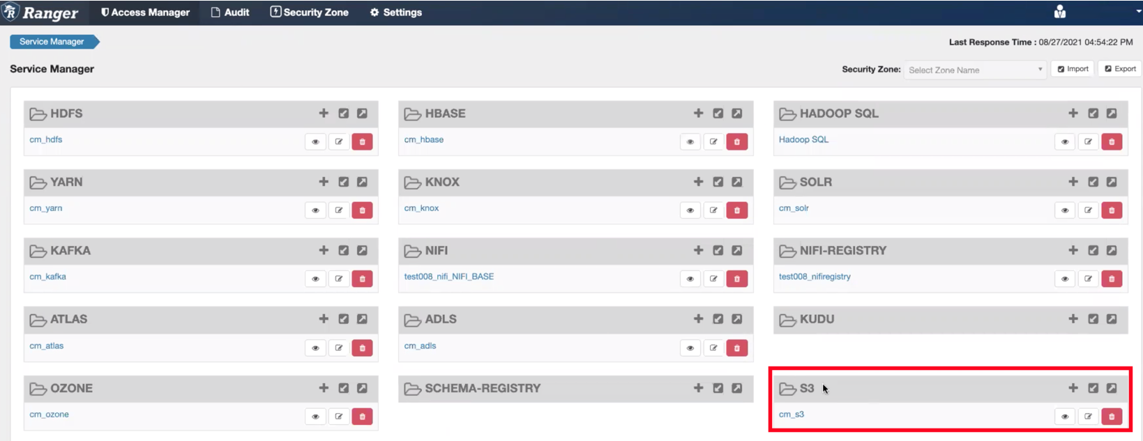 From your Data Hub cluster, select Ranger from the list of services and log