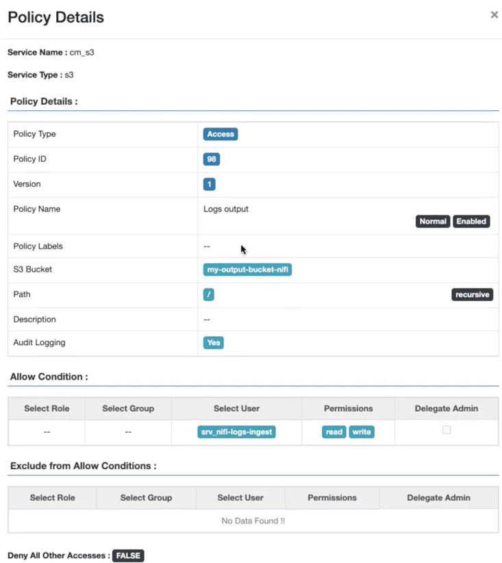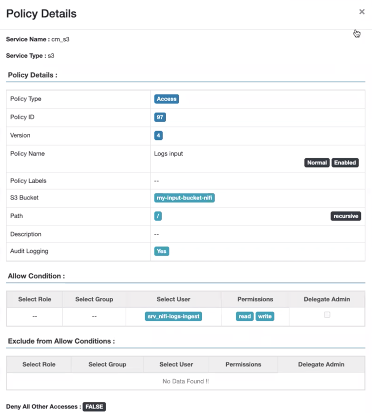 In the Allow Condition section, specify the Cloudera user name in the