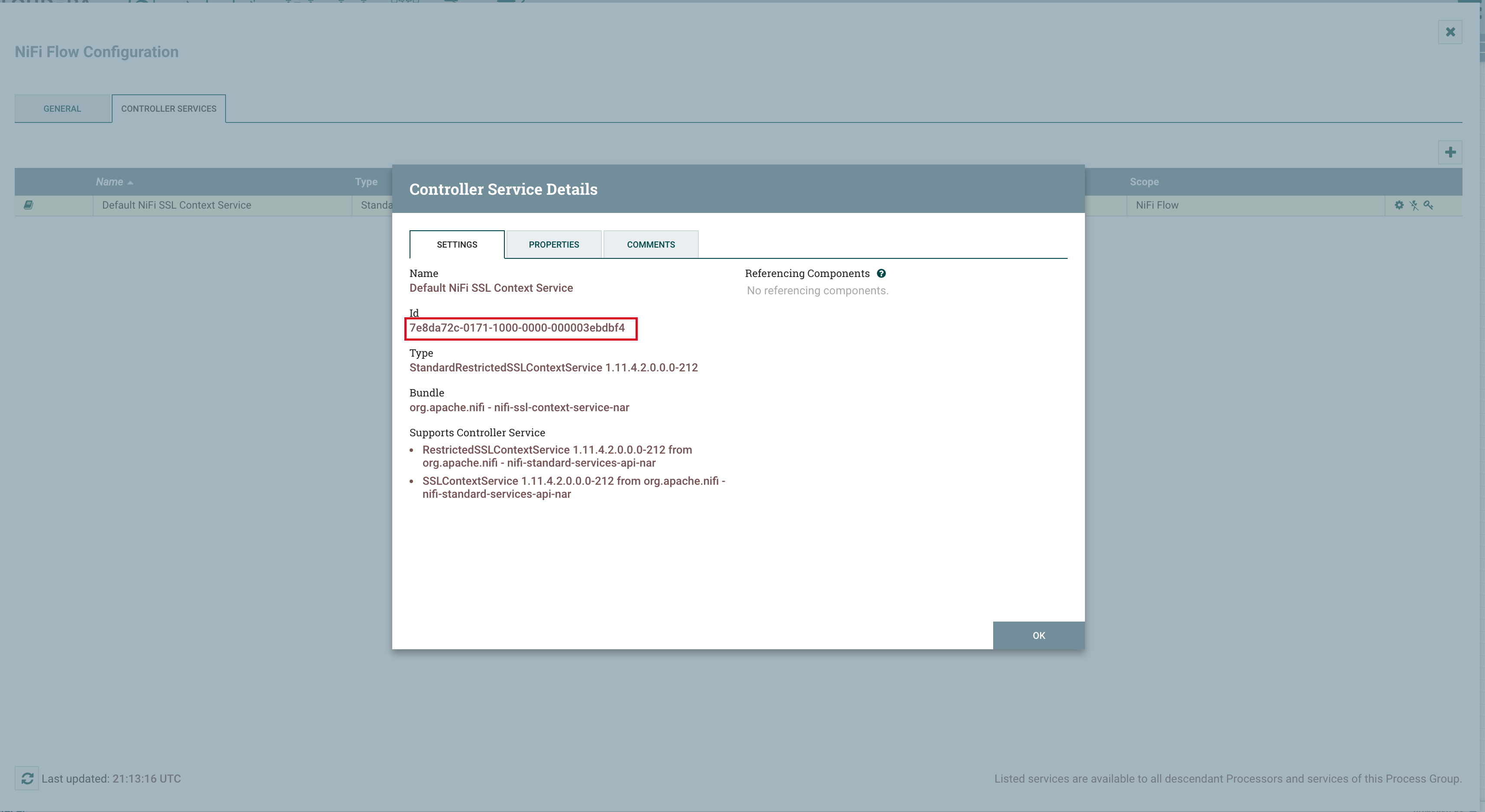 From the NiFi canvas, copy the ID of the process group, SSL Context Service, or