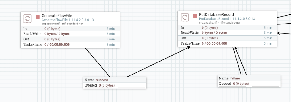 2. Click Add to close the dialog box and add the connection to your flow. Optionally, you can add success and failure funnels to your data flow, which help you see where flow files are routed when your data flow is running.