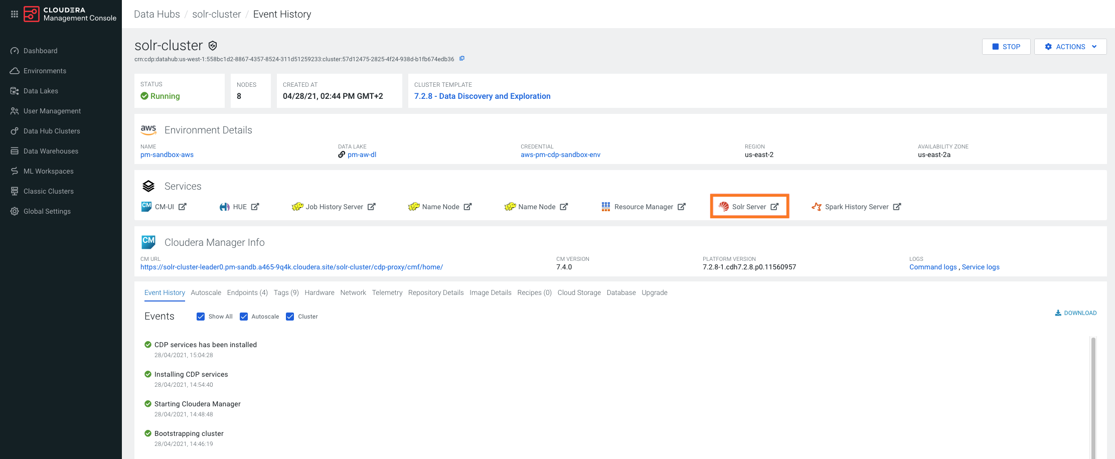 Navigate to your Data Discovery and Exploration cluster and