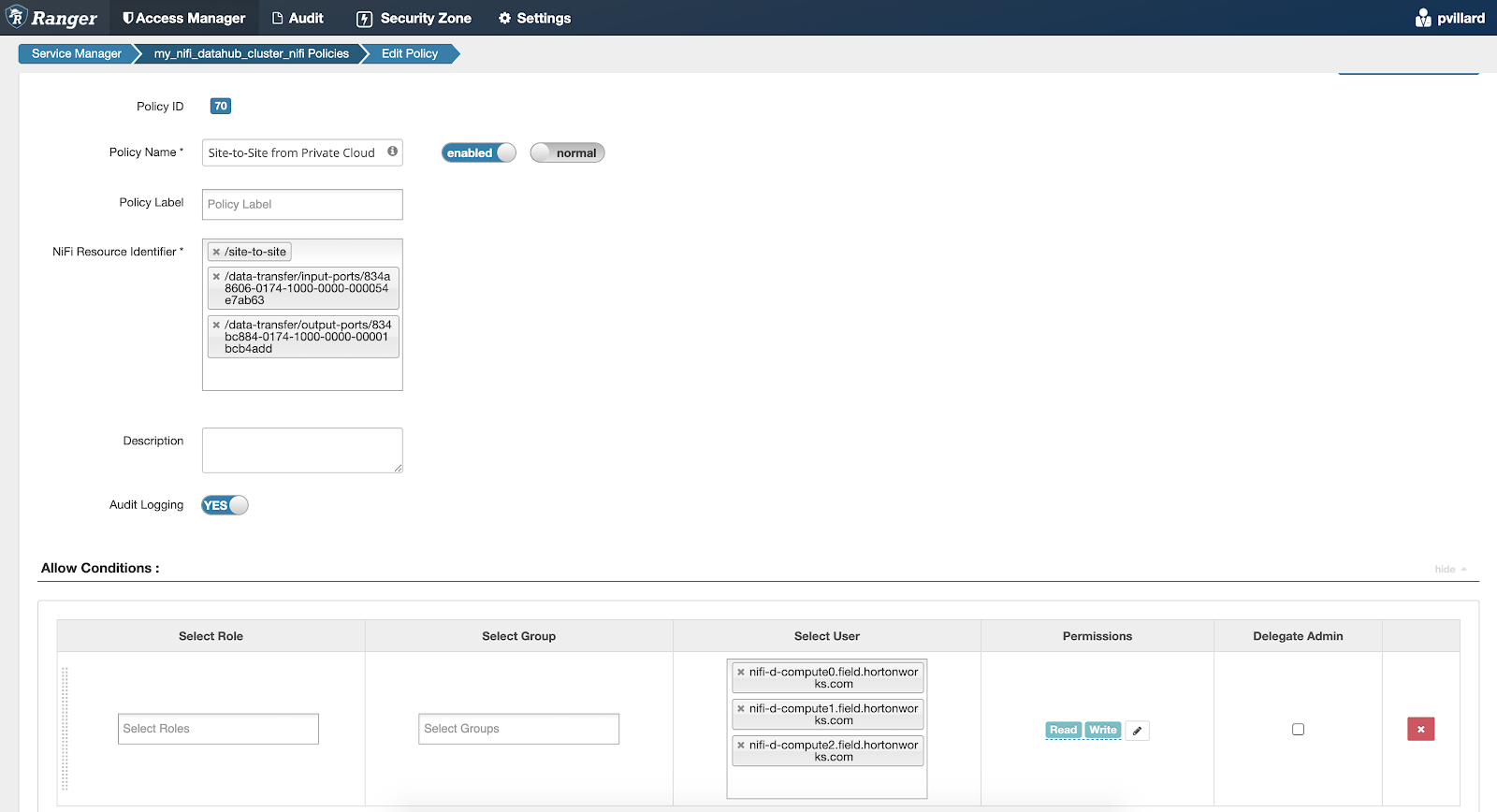 Configuring Ranger policies for site-to-site communication