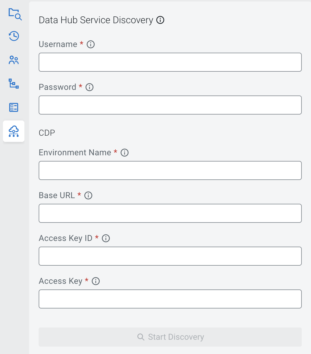 Using the Streaming SQL Console, you can import the Kafka, Schema Registry and Kudu services that already exist in your Cloudera on cloud environment. For the auto discovery, you need to provide the environment and machine user information that was provided by your administrator.