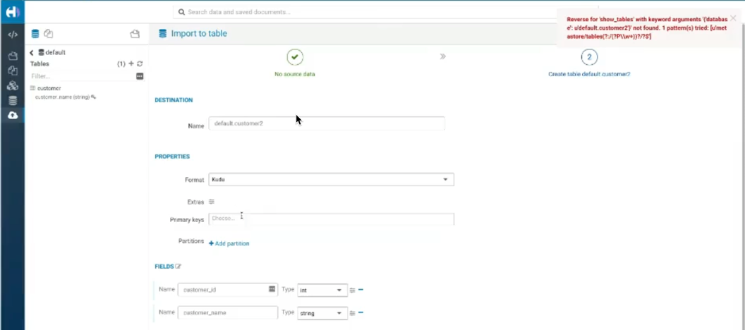 Before you can ingest data into Kudu, you need a target Kudu table prepared to receive the data flow.