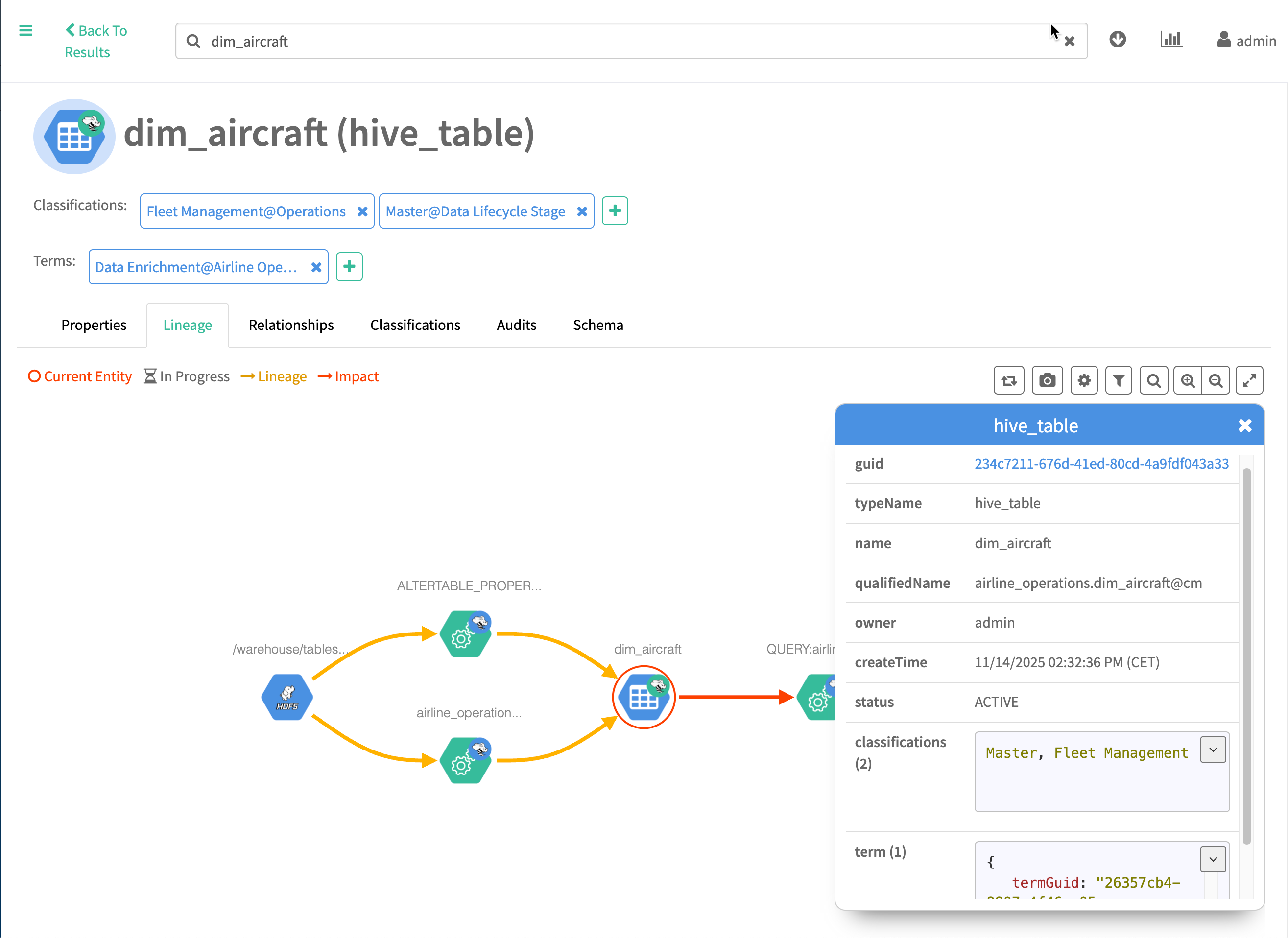 - Search: find entities in the lineage graph by name.