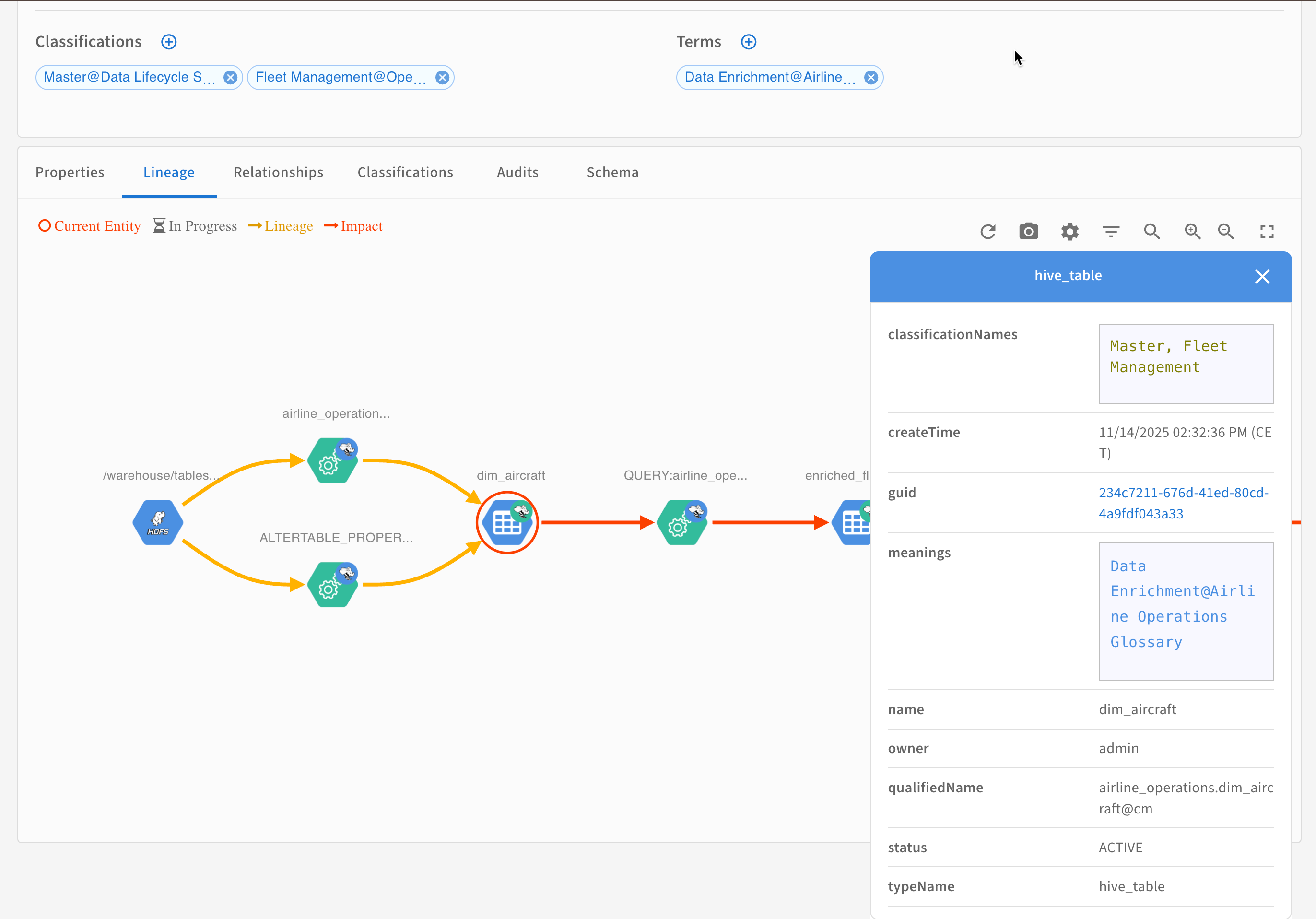 Lineage | Connects the current entity with entities that provided input data. Entities connected with yellow lines are ancestors of the current entity. |