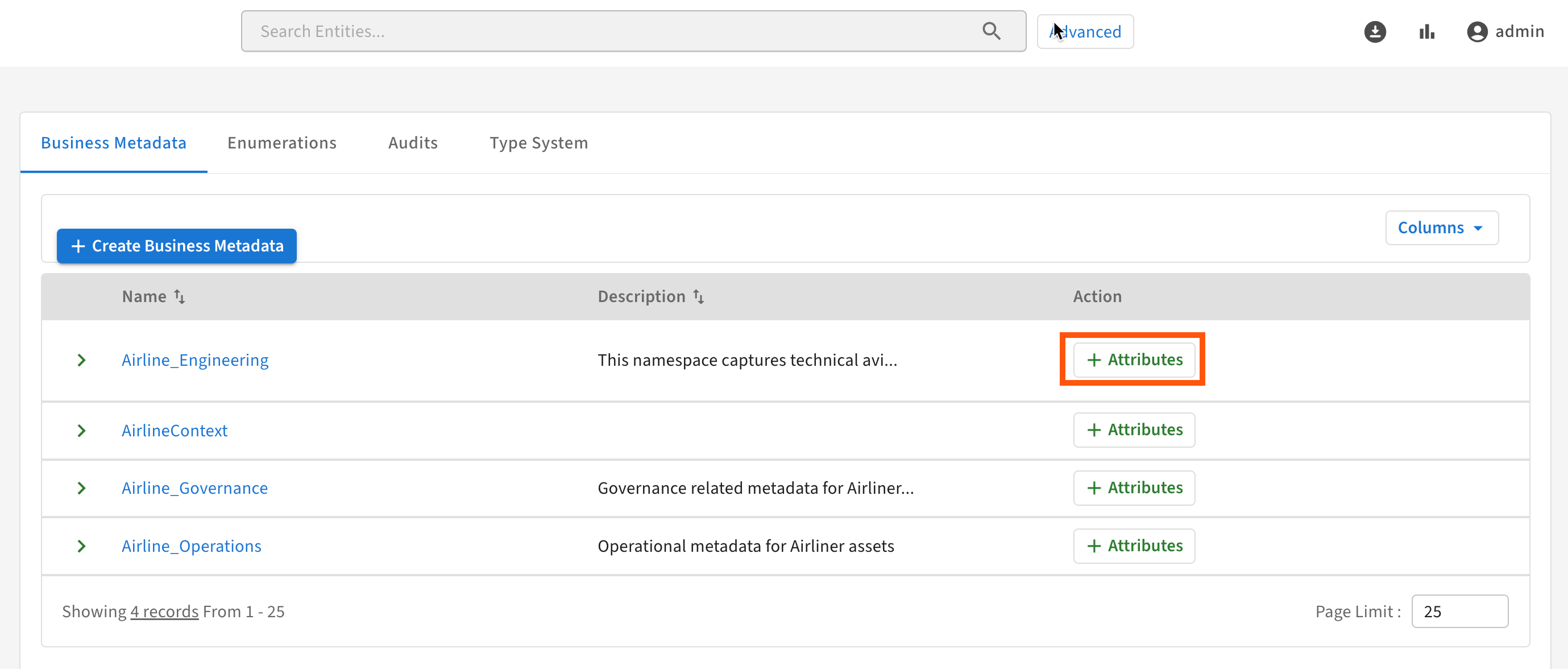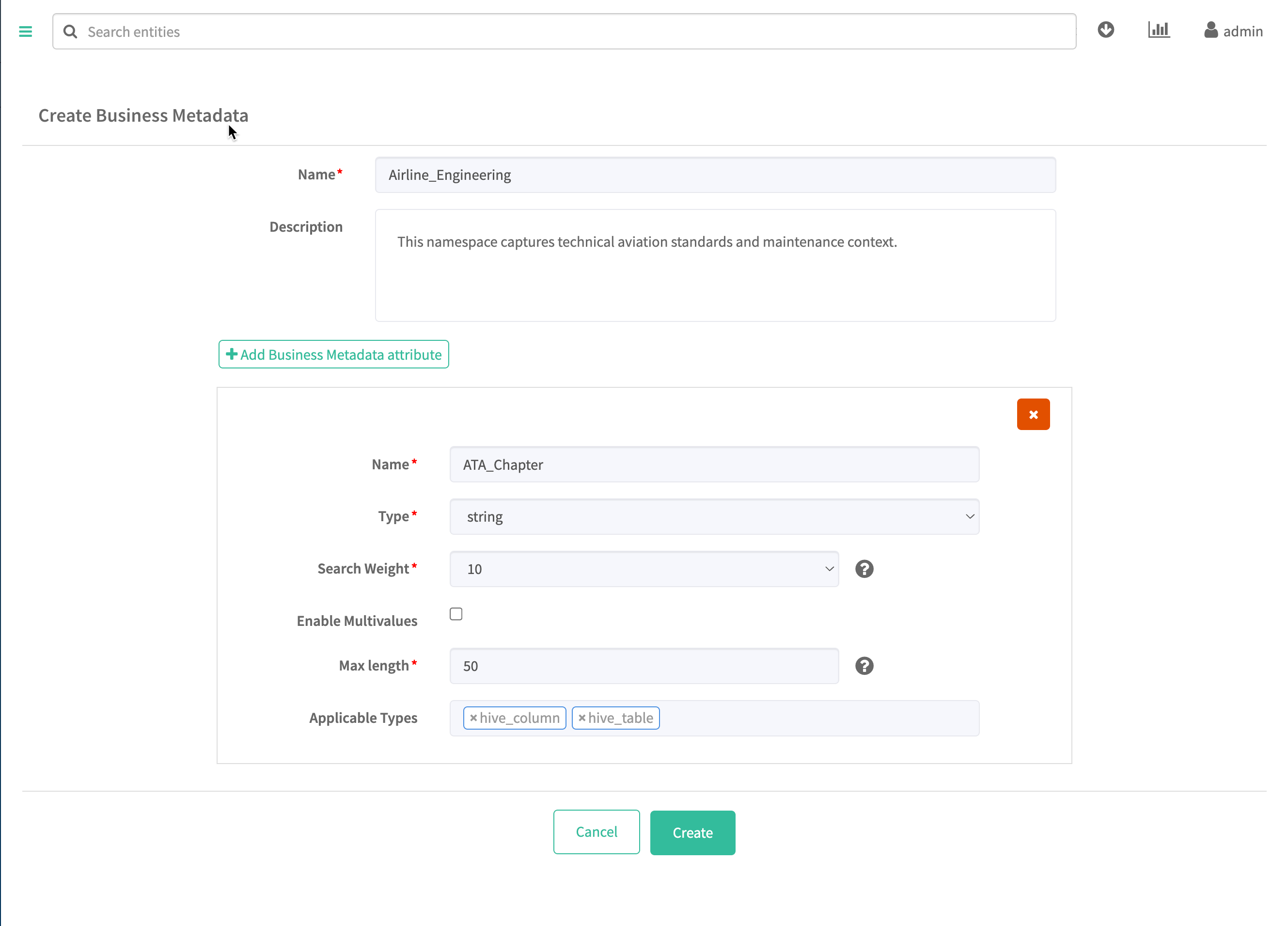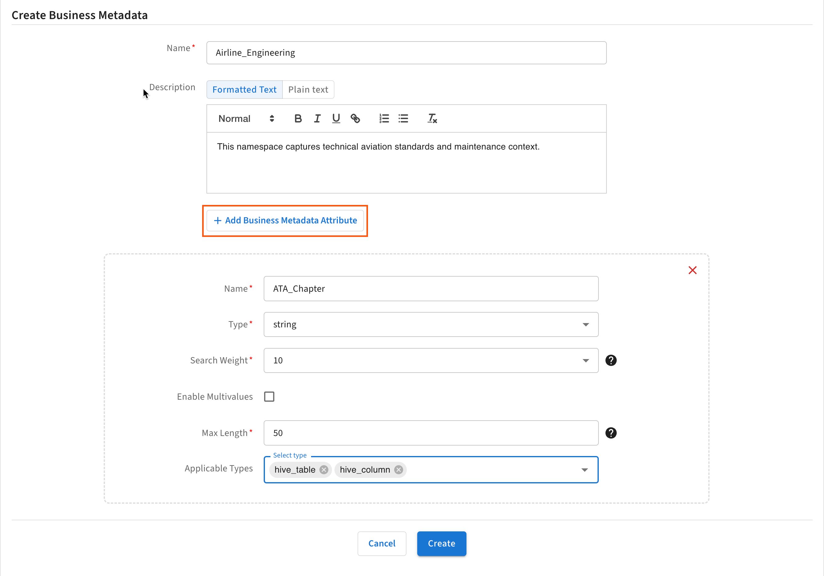 Business Metadata attributes allow you to extend the metadata for a given entity type. Create them in a Business Metadata collection from the Administration page.