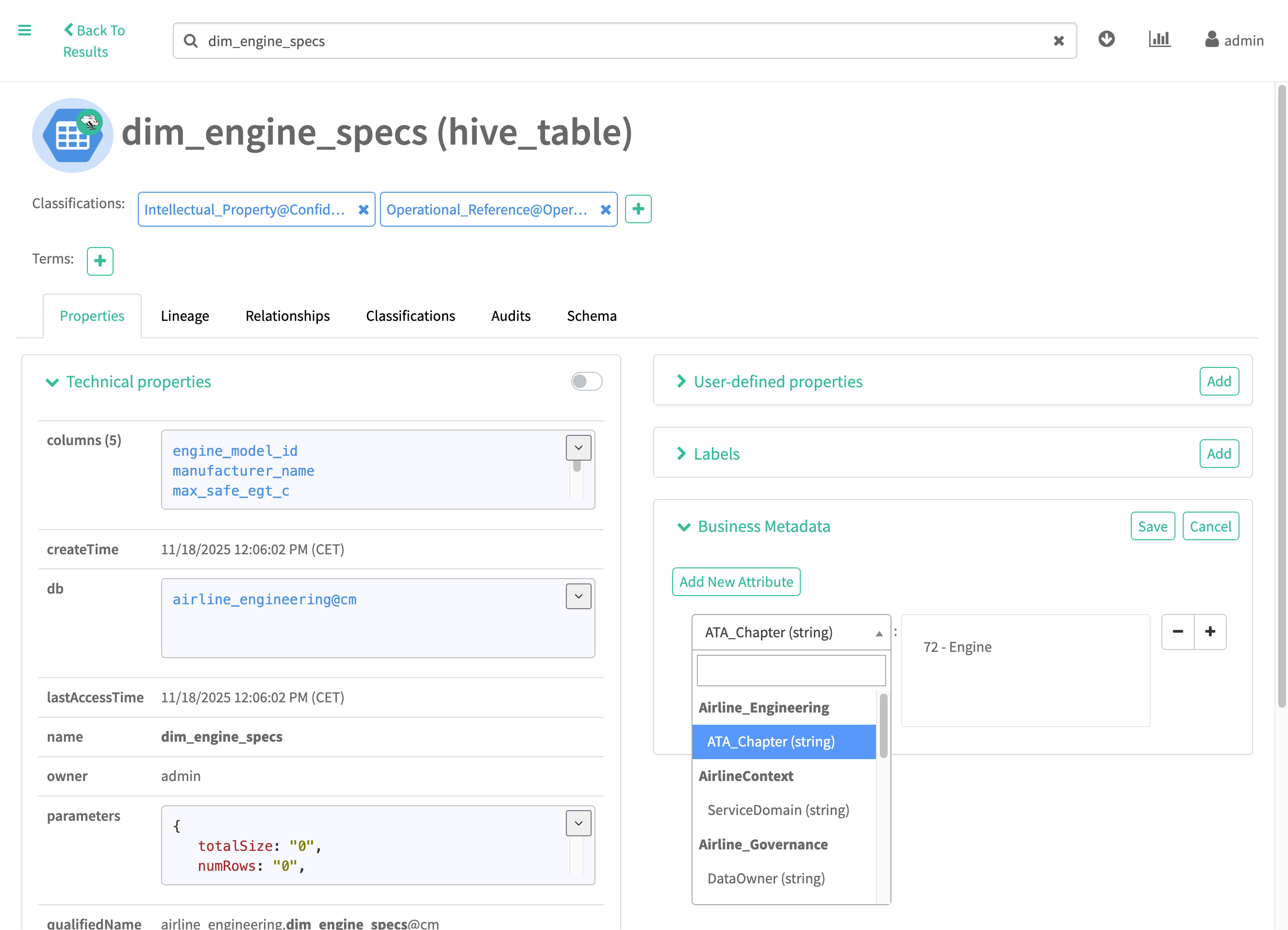 Assign Business Metadata attributes to entities in the entity detail page.