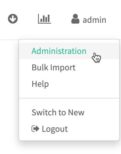 - To access the Atlas Administration features, choose Administration from the user menu in the top right of the Atlas window. Users need administrator privileges to access the Administration panel features.