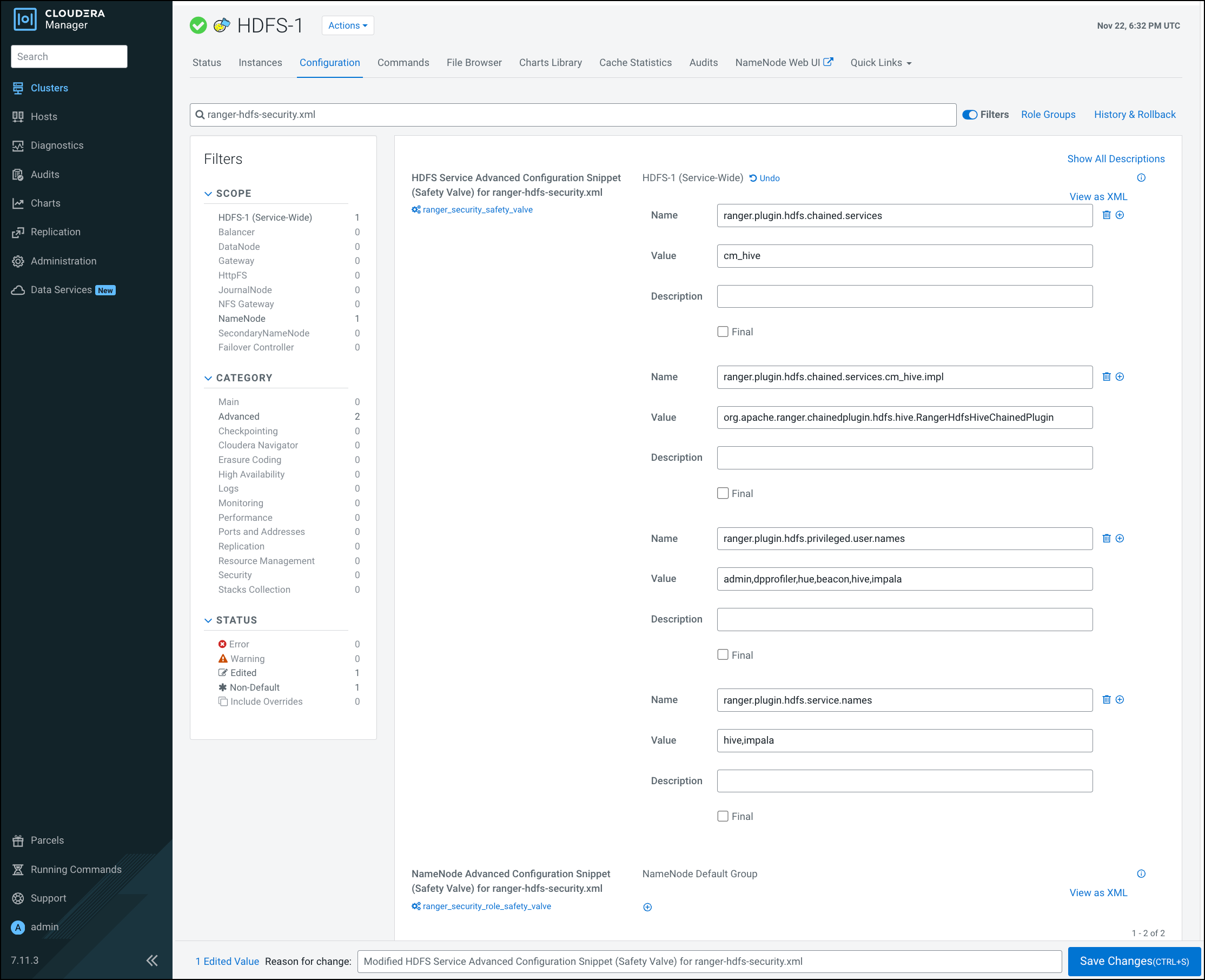 - Cloudera Base on premises 7.1.4 or higher version cluster with Apache Ranger, Hive, and HDFS.