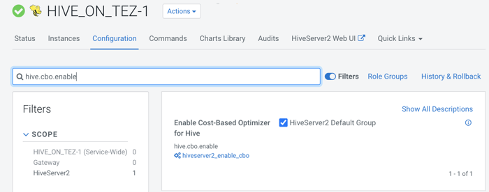 In this task, you enable and configure the cost-based optimizer (CBO) and configure Hive to gather column statistics as well as table statistics for evaluating query performance. Column and table statistics are critical for estimating predicate selectivity and the cost of the plan. Certain advanced rewrites require column statistics.