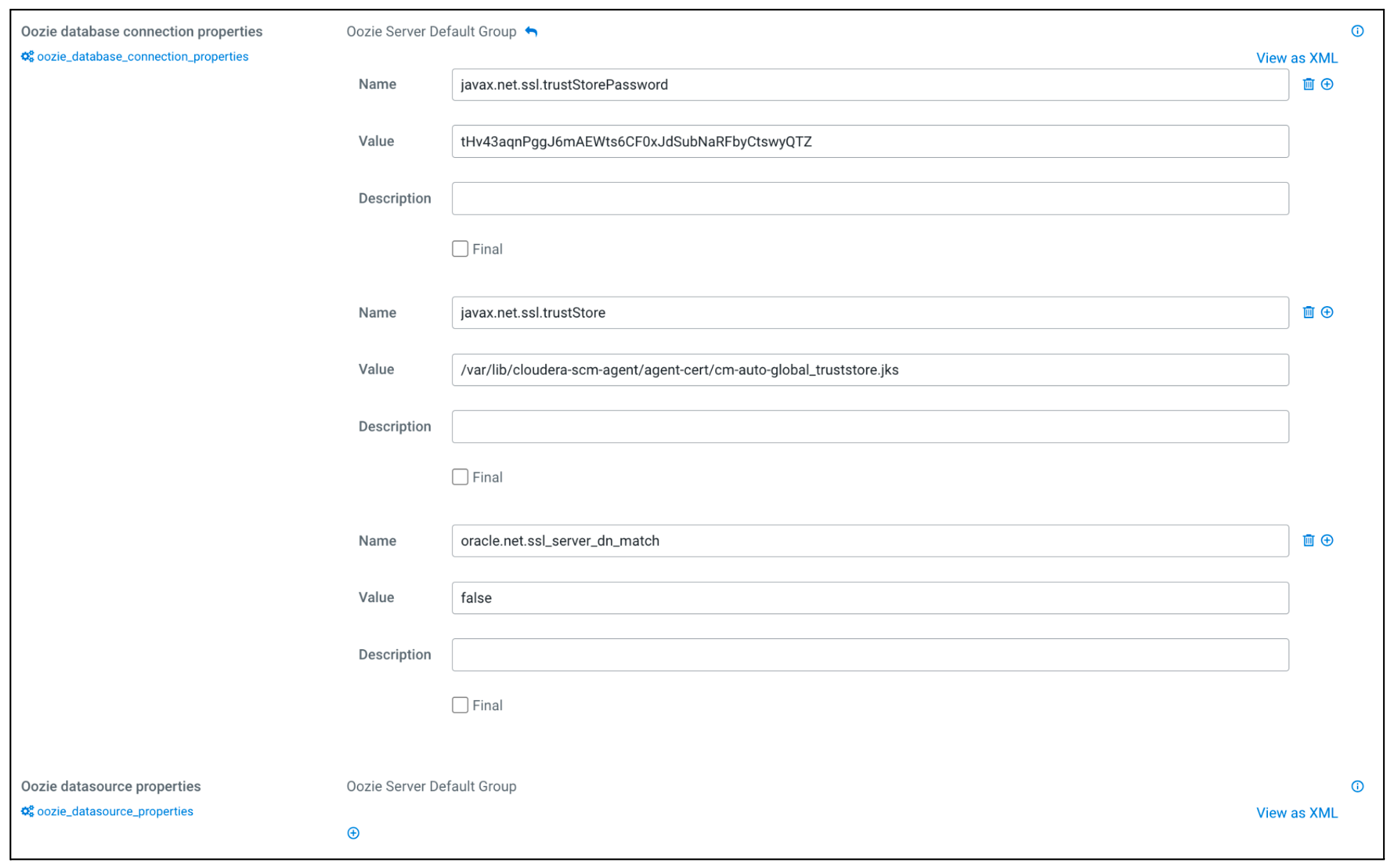 The values of <HOST>, <PORT>, and <DB_NAME> come from the following Oozie properties