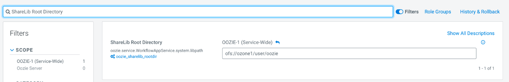 Go to Oozie > Configuration > Search and Update ShareLib Root Directory.
