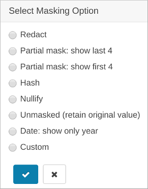 | MASK_NONE | Unmasked (retain original value) | No masking | N/A |