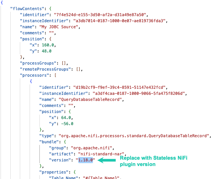 11. Open the downloaded JSON file, and replace every occurrence of the version number (1.18.0) with the version number of your Stateless NiFi plugin.