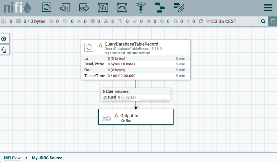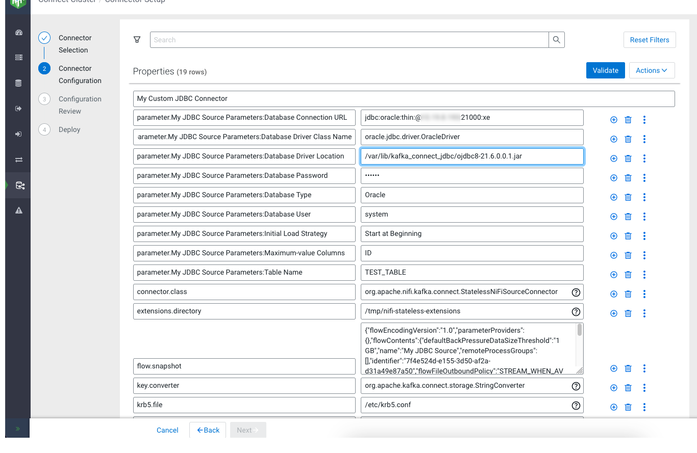 A step-by step tutorial that walks you through how you can create a JDBC Source dataflow and how to deploy the dataflow as a Kafka Connect connector using the Stateless NiFi Source connector. The connector/dataflow presented in this tutorial reads records from an Oracle database table and forwards them to Kafka in JSON format.