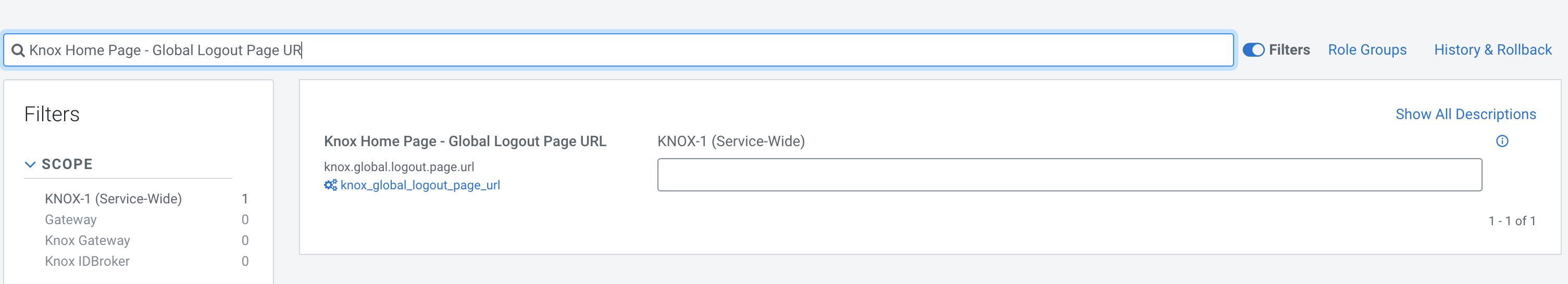 knoxssotopology is configured to use the Pac4J federation filter (the default configuration in Cloudera on cloud), this configuration is an essential parameter and must not be left empty. This usually points to the logout endpoint of the pre-configured SAML/OIDC callback.