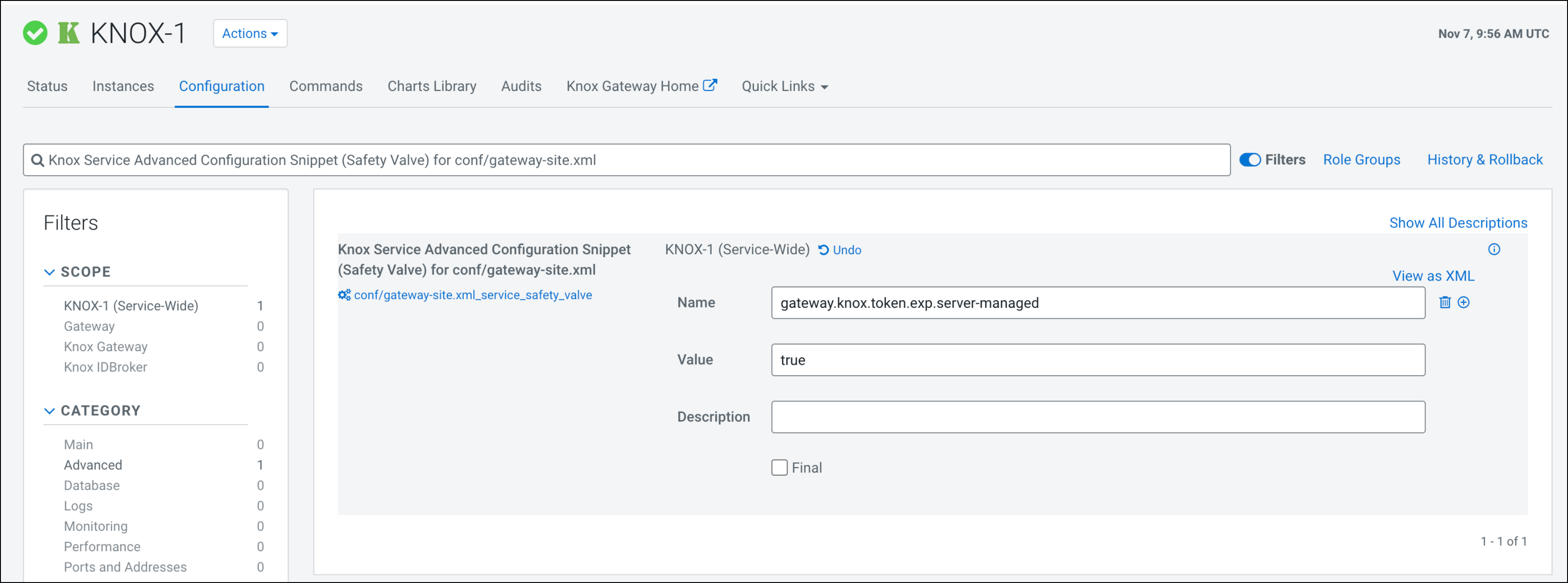 - In Knox Service Advanced Configuration Snippet (Safety Valve) for conf/gateway-site.xml, press