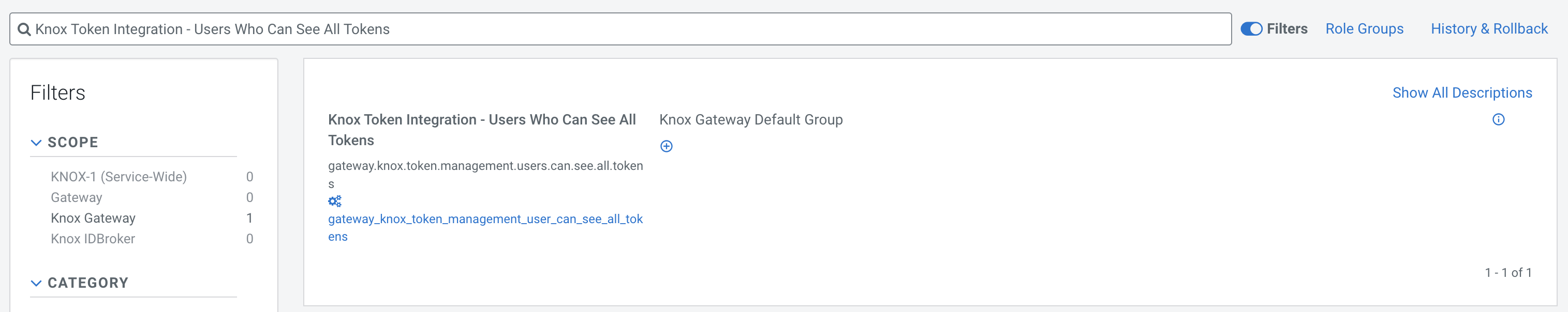 After enabling the feature, every SSO cookie, the result of a login event through the Knox SSO service, will be recorded in the same database that Knox uses for token management purposes. These SSO cookies are included on the Token Management page. If the logged-in user is a configured "superuser" (added in the above-referenced Users Who Can See All Tokens list), that user is capable of narrowing down user tokens, for whom they suspect are the subject of malicious activities, and disabling the active tokens on the UI (either individually or in batches).