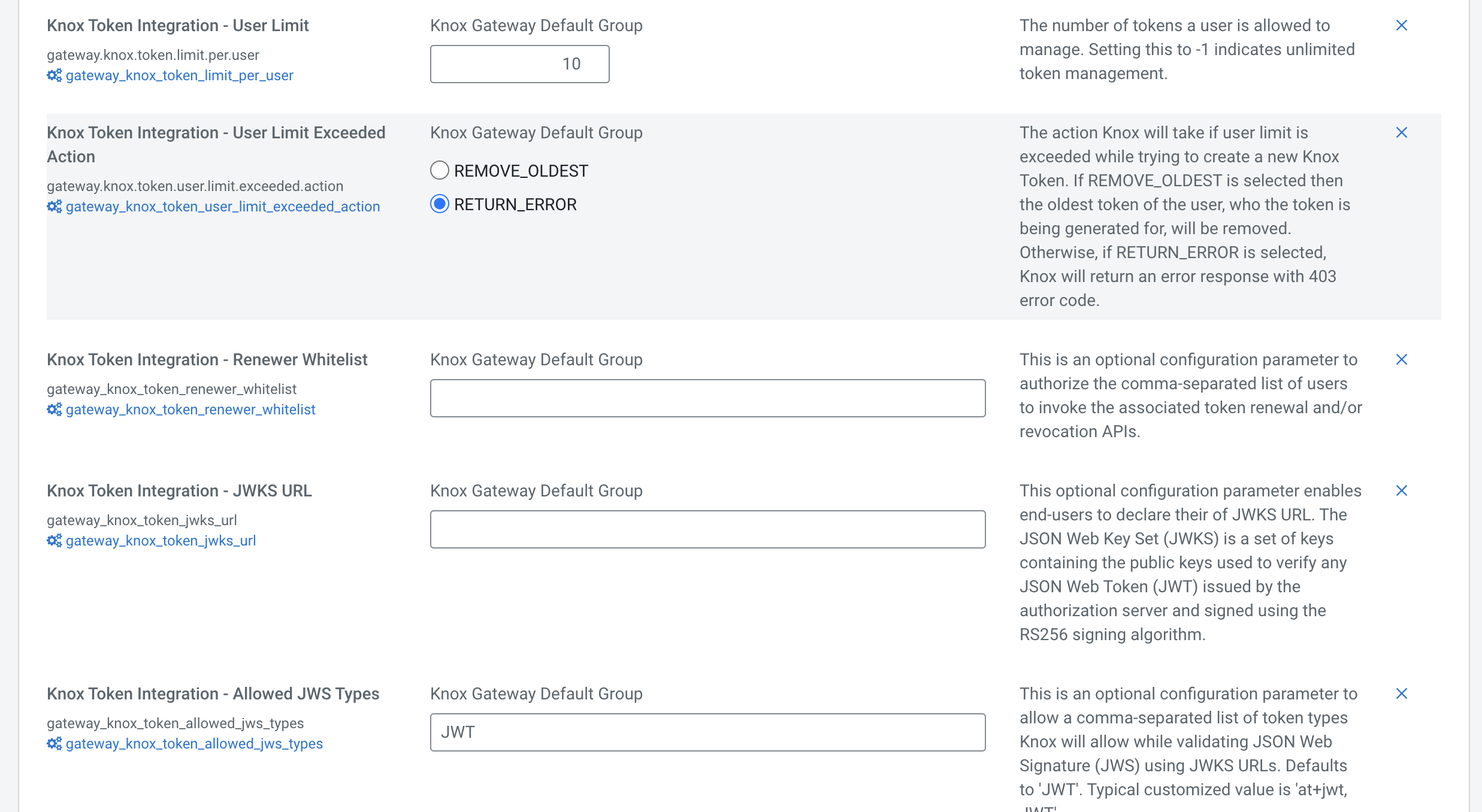 page. However, they can be hidden by disabling the Knox Token Integration - Enable