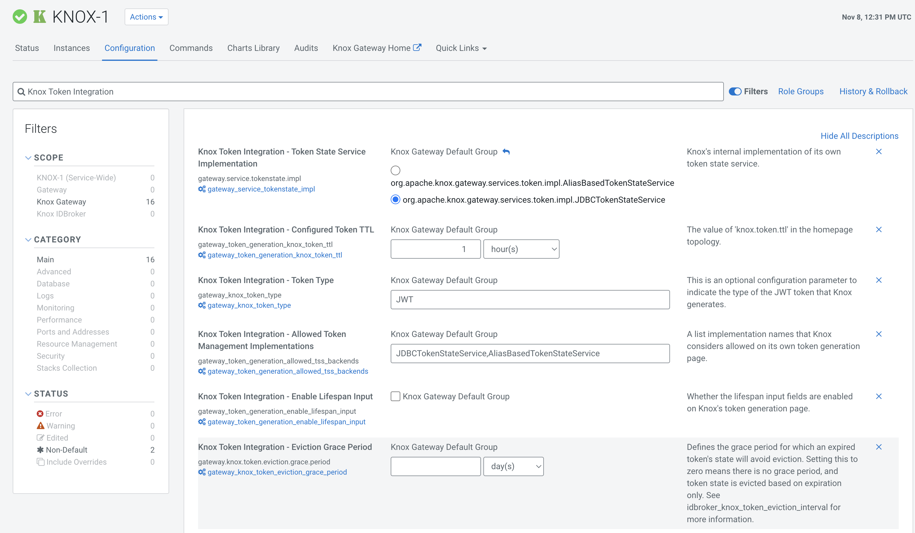 cluster) > Token Integration (under the Services tab). This will bring you to the Knox