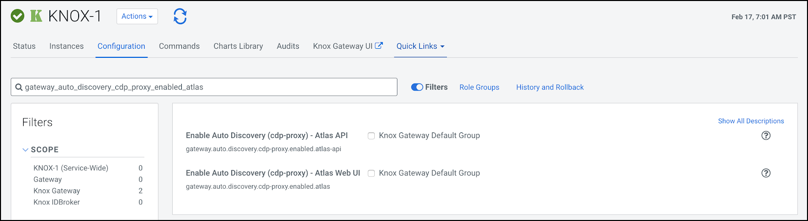 Knox’s Configuration page in CM, save the changes and refresh the cluster.
