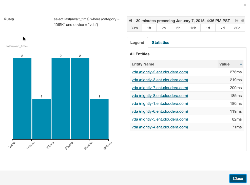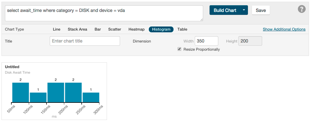 - Moving the mouse to a data point on a line, stack area, or bar chart shows the details about that data point in a pop-up tooltip.
