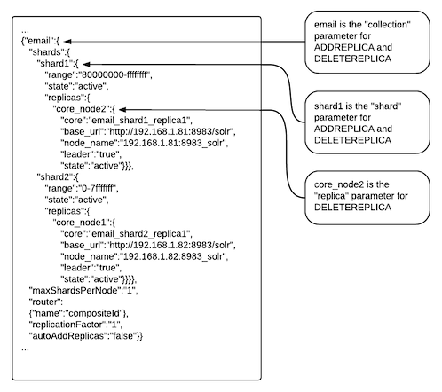 http://solr01.example.com:8983/solr/admin/collections?action=DELETEREPLICA&collection=email&shard=shard1&replica=core_node2
