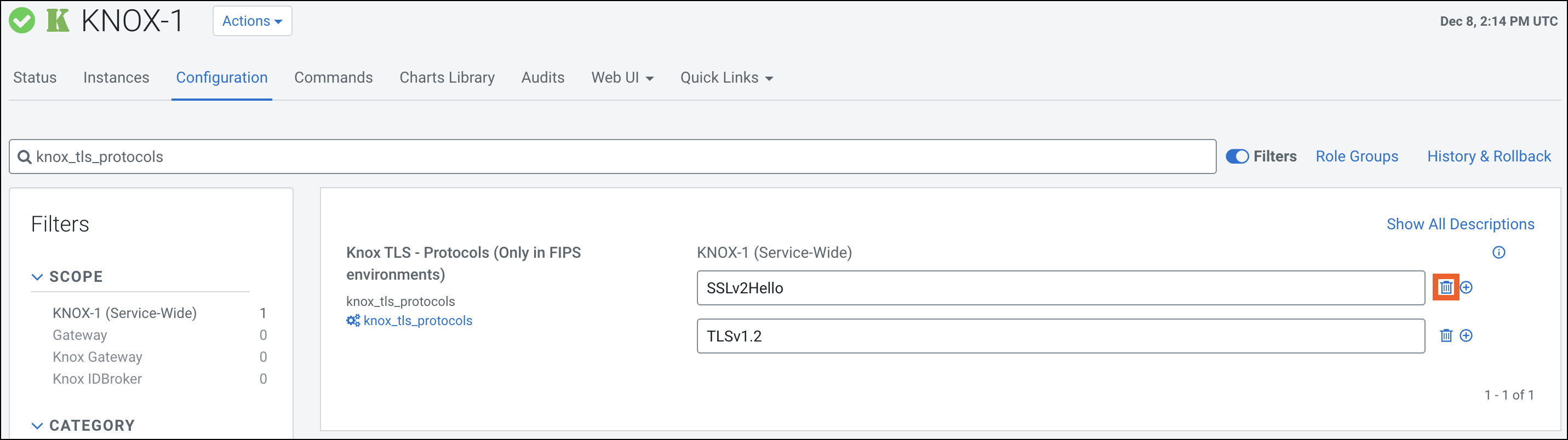Find the Knox TLS - Protocols (Only in FIPS