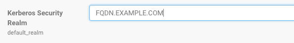 default_realm = FQDN.EXAMPLE.COMAfter adding the default realm to the configuration file for all hosts in the cluster, configure the same default realm for Cloudera Manager Server.