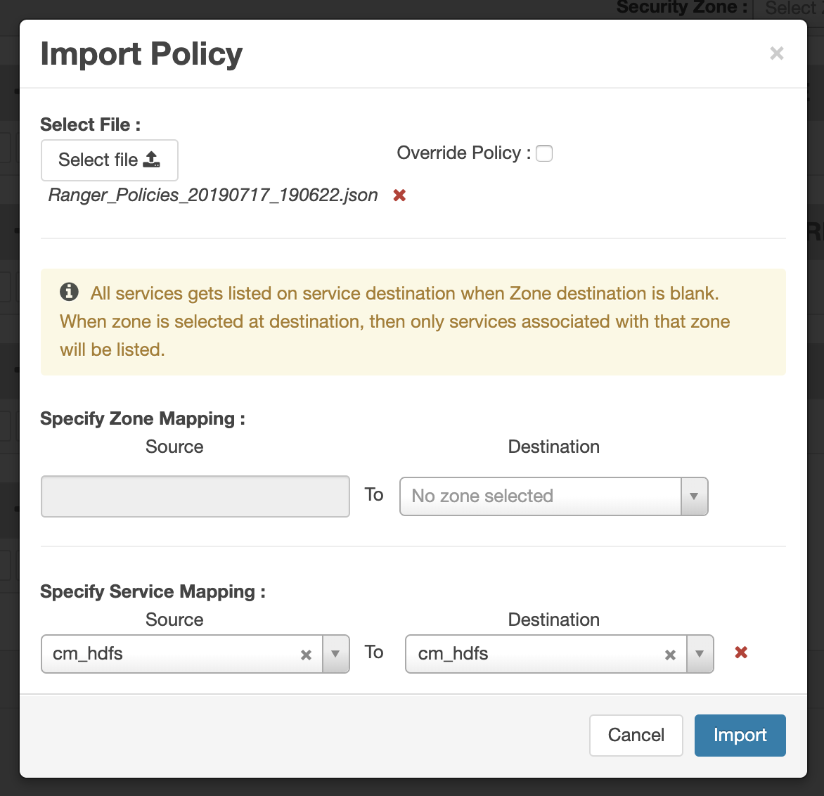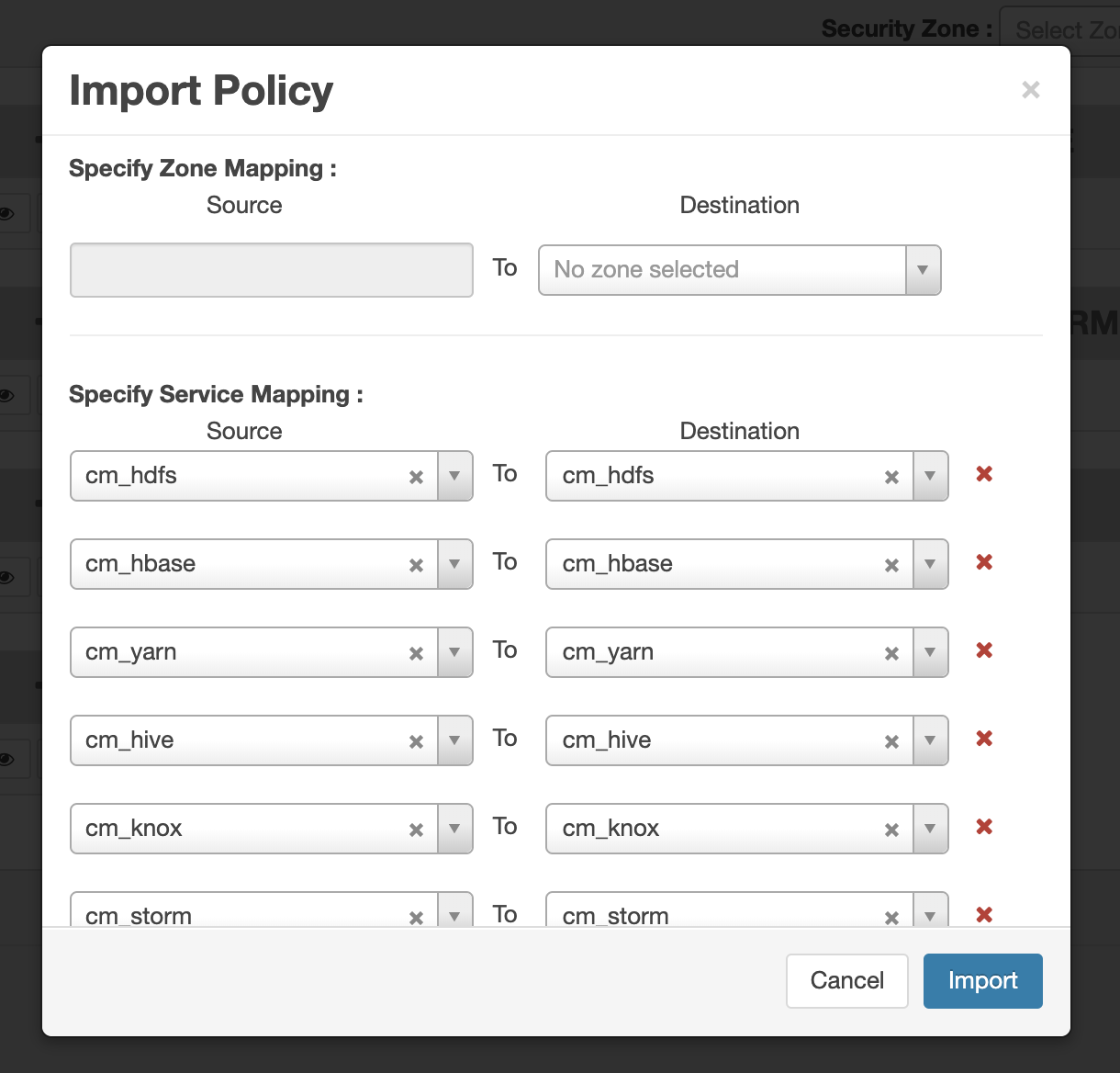 - Zone Mapping – when no destination is selected, all services are imported. When a destination is selected, only the services associated with that security zone are imported.