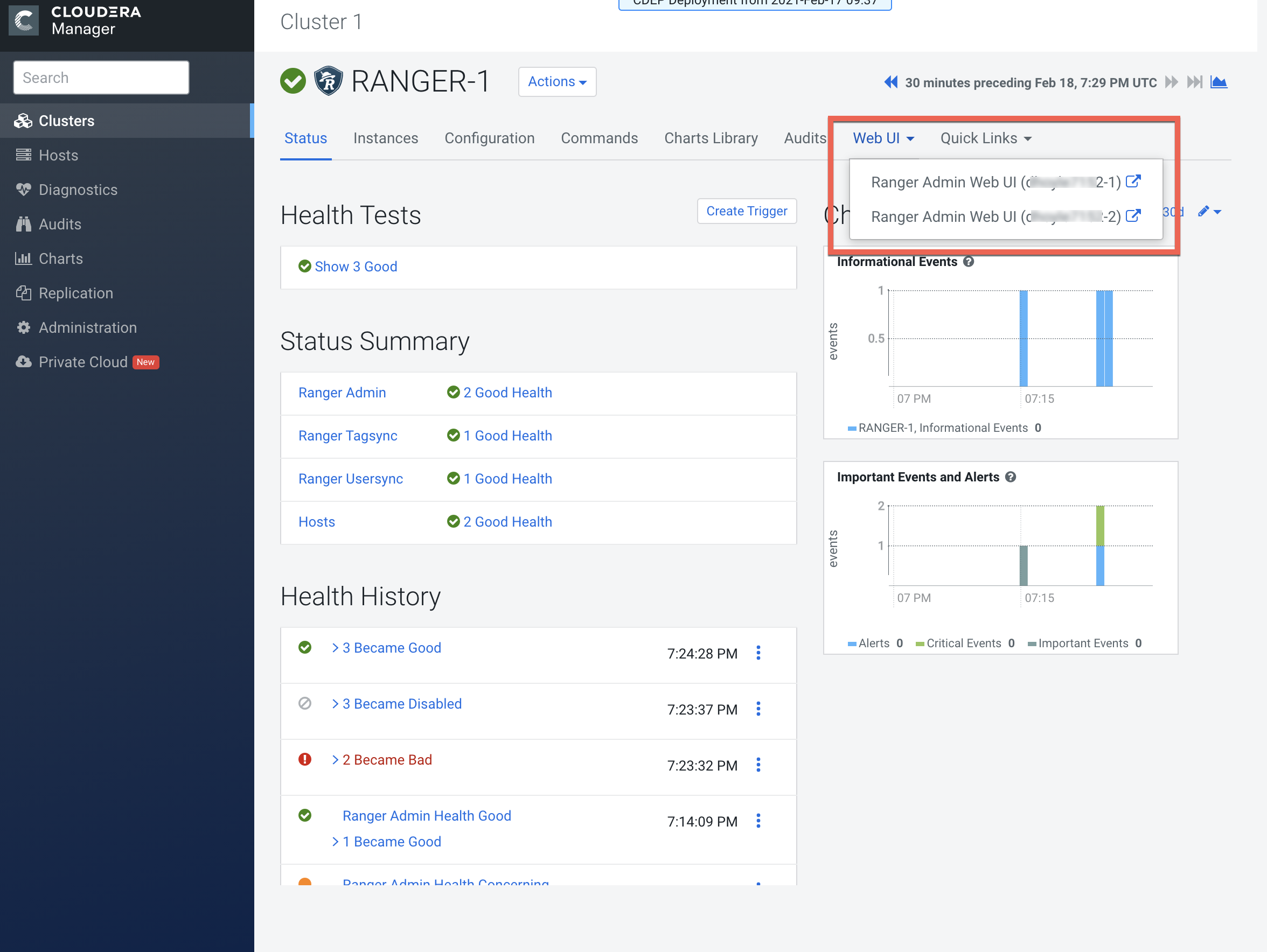 - If a connection is refused (indicating a failure), requests automatically reroute to the alternate Ranger Admin instance. However, you must manually switch to the alternate Ranger Admin Web UI.