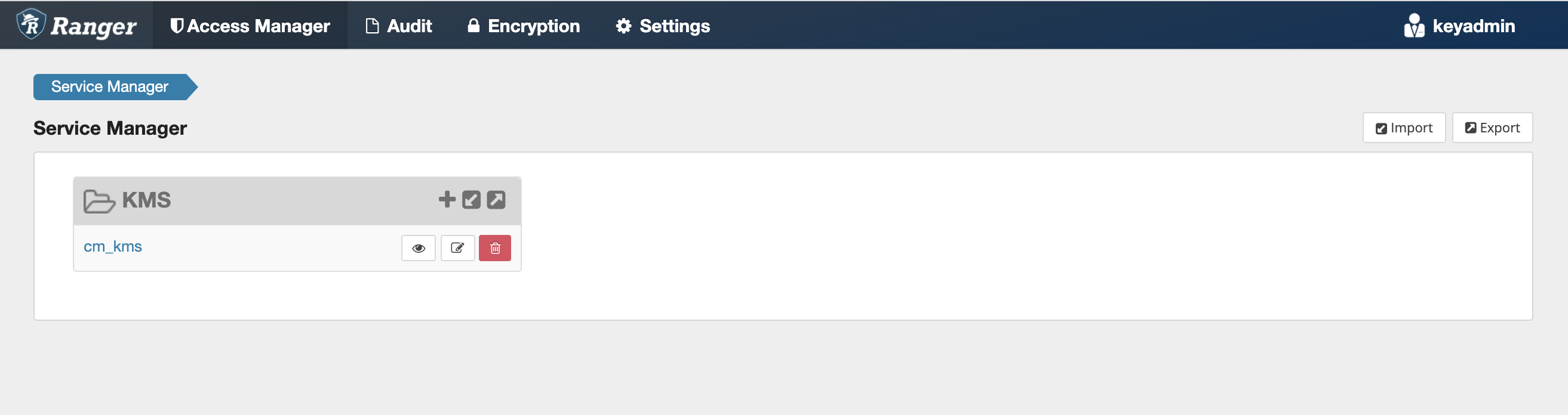 To access Ranger KMS, click the Ranger Admin Web UI link, enter your Ranger KMS admin user name and password, then click Sign In.