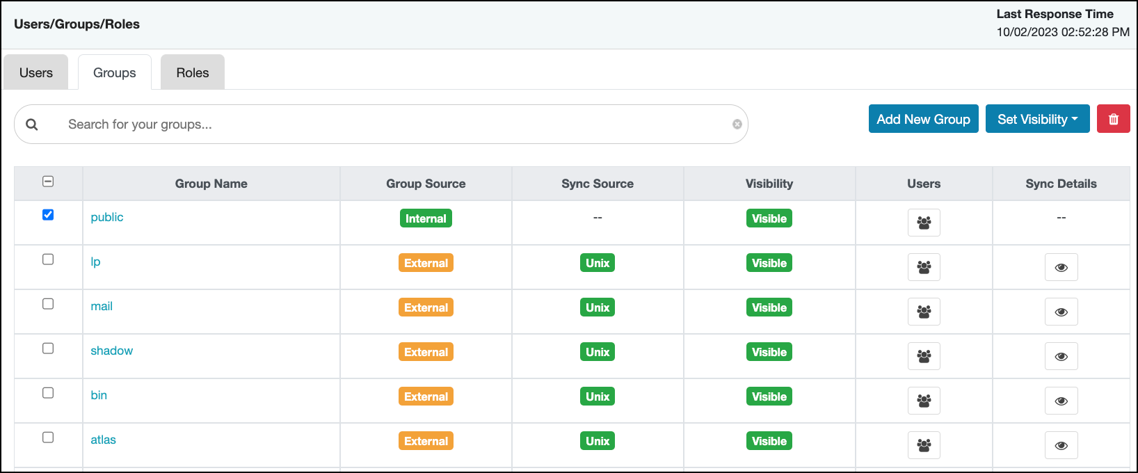 Users/Groups/Roles displays the Groups tab active.