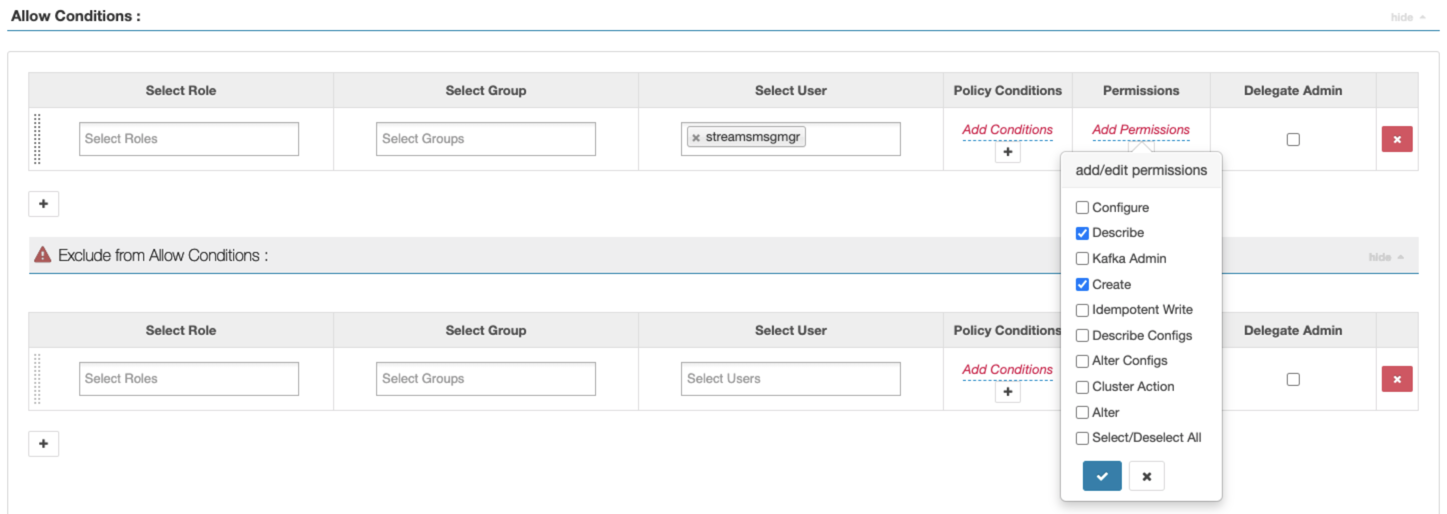 3. Go to the Ranger service UI and configure the Kafka policies.