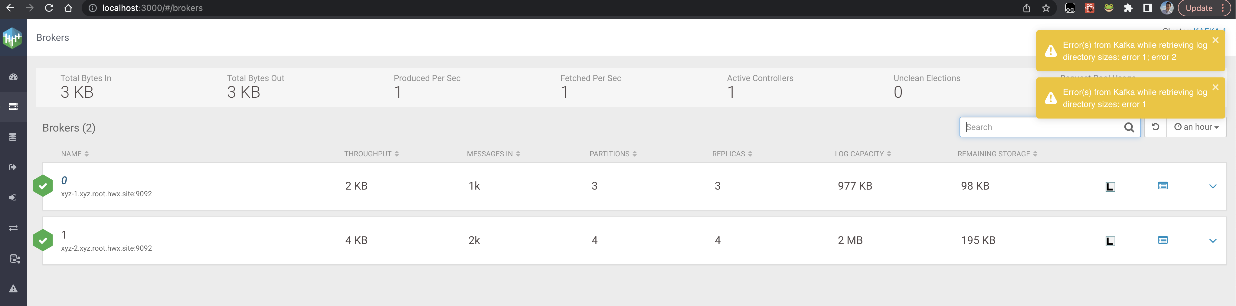 broker are displayed. The log-size information per partition is available. Furthermore, the