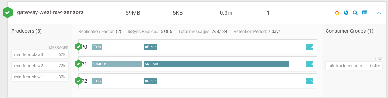 Leader and in-sync replicas also act as links to the corresponding broker details page.