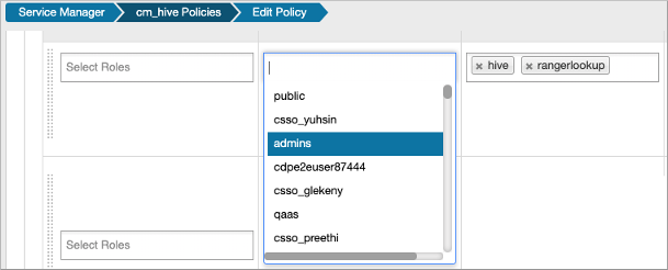 3. Add your user or group name to Hive policies to grant full access to Hive.