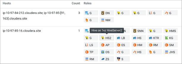 9. Using the fully qualified domain name or IP address a node in your cluster from Cloudera Manager > Hosts > Role(s) and looking through the list of roles to find HS2 (Hive on Tez HiveServer2). For example: