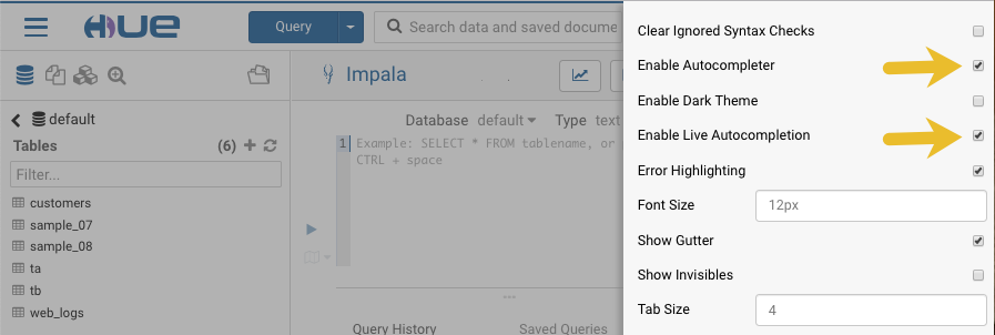 dialects while you enter queries into the editor window. See Brand new Autocompleter for Hive and