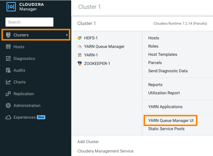 In Cloudera Manager, navigate to Clusters > YARN Queue Manager UI.