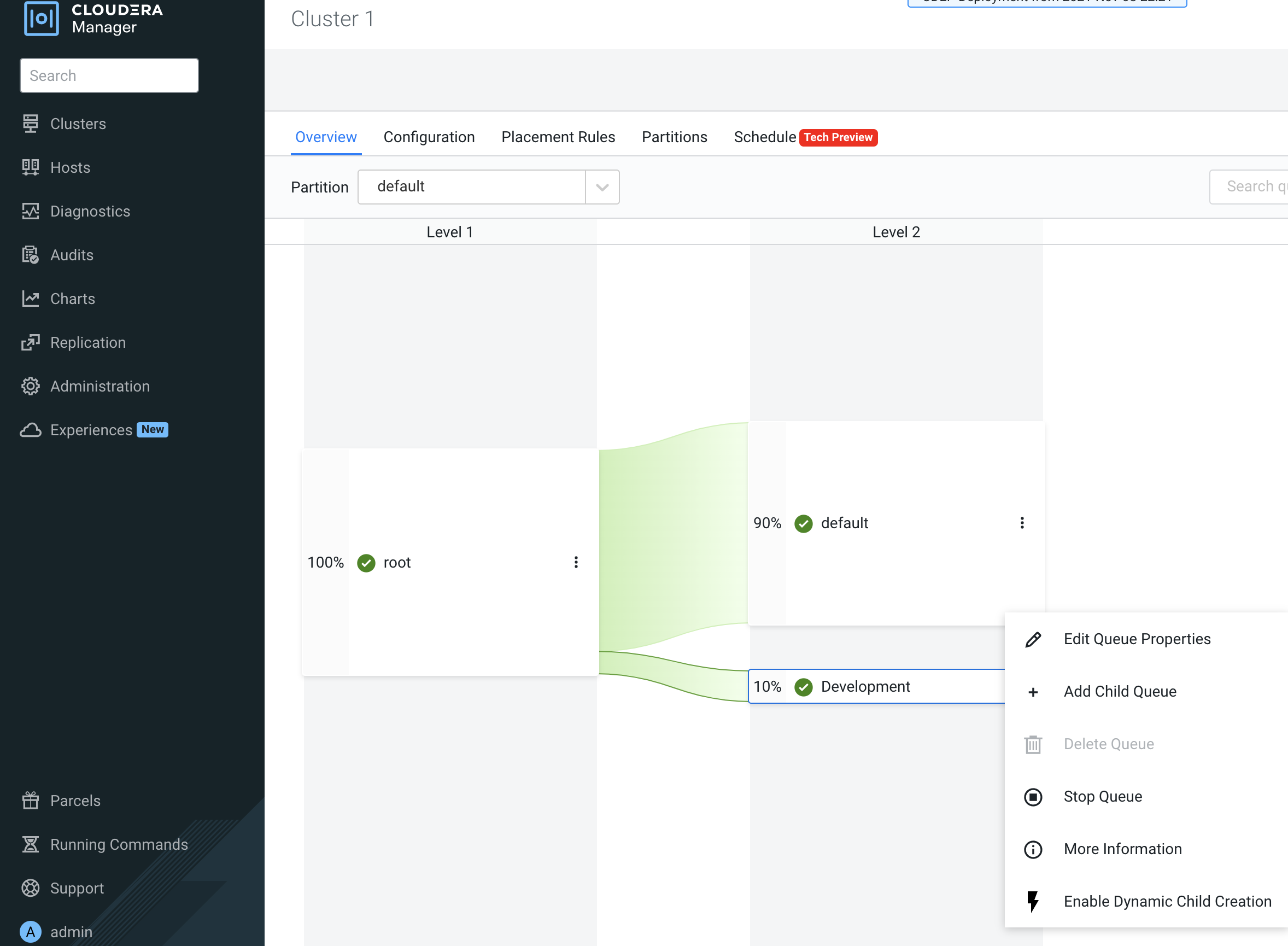 In Cloudera Manager, you can use the Queue Properties to view and configure the queue properties.