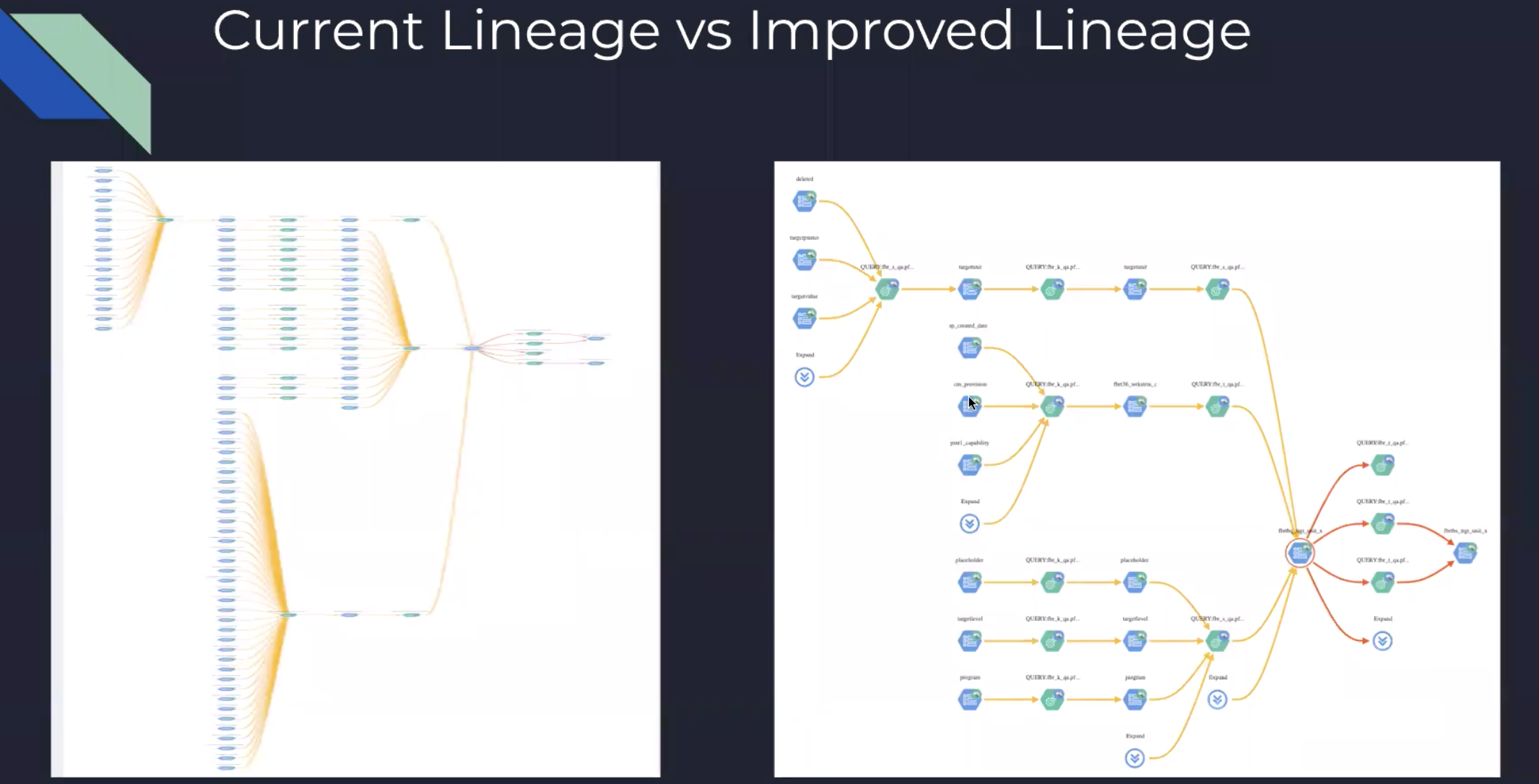 In hindsight, the lineage data is broken down into parts and when the user clicks on the specific “expandable” button in the lineage, only then the lineage shows up fully (or as the lineage data is broken) to provide additional information.